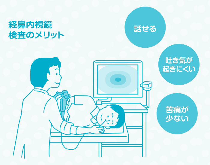 当クリニックではできるだけ苦痛を感じず検査を行えるように、最新の細径内視鏡を用いた経鼻内視鏡検査、または鎮静剤を用いた経口内視鏡検査を行っています。